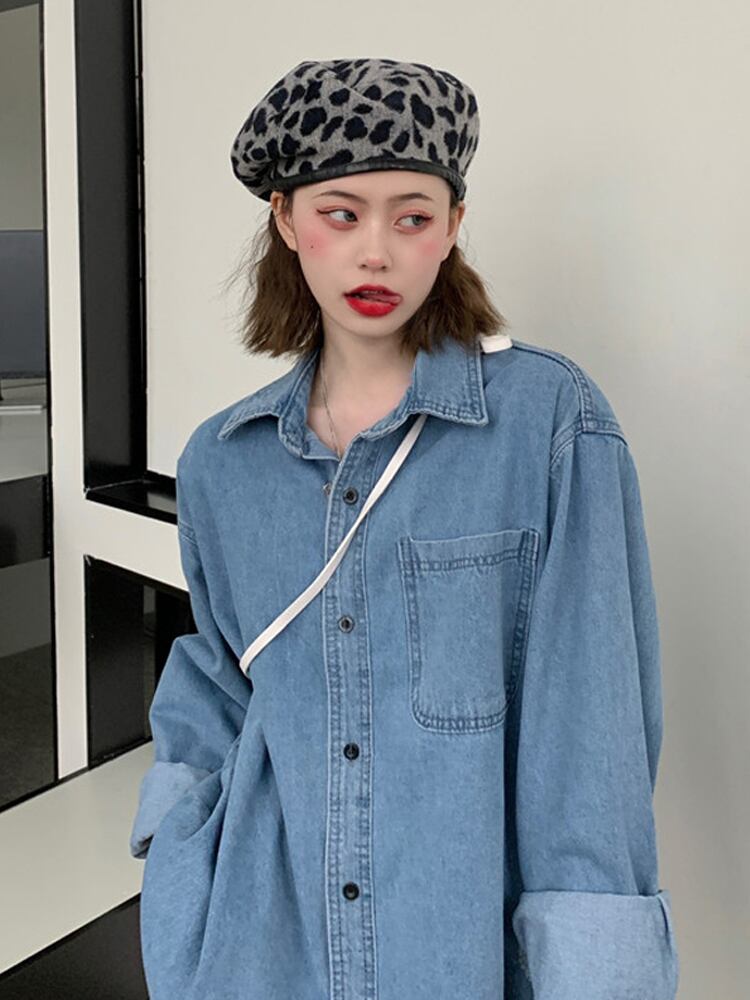 シャツ デニムシャツ 長袖 シンプル 無地 大人カジュアル ゆったり オーバーサイズ 羽織り