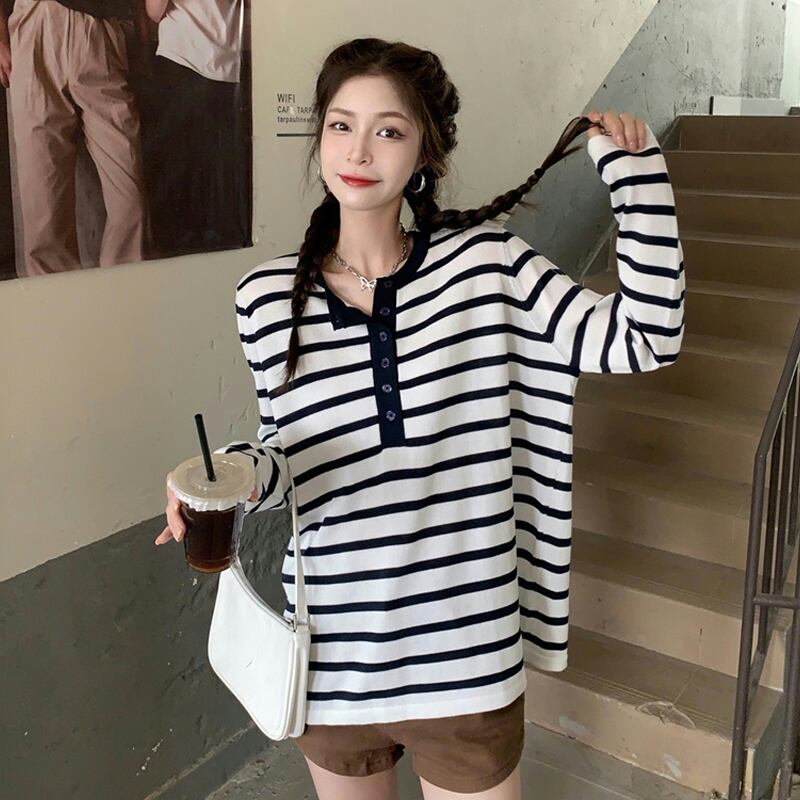 カットソー 長袖 ボーダー柄 フロントボタン シンプル 大人カジュアル ゆったり オーバーサイズ