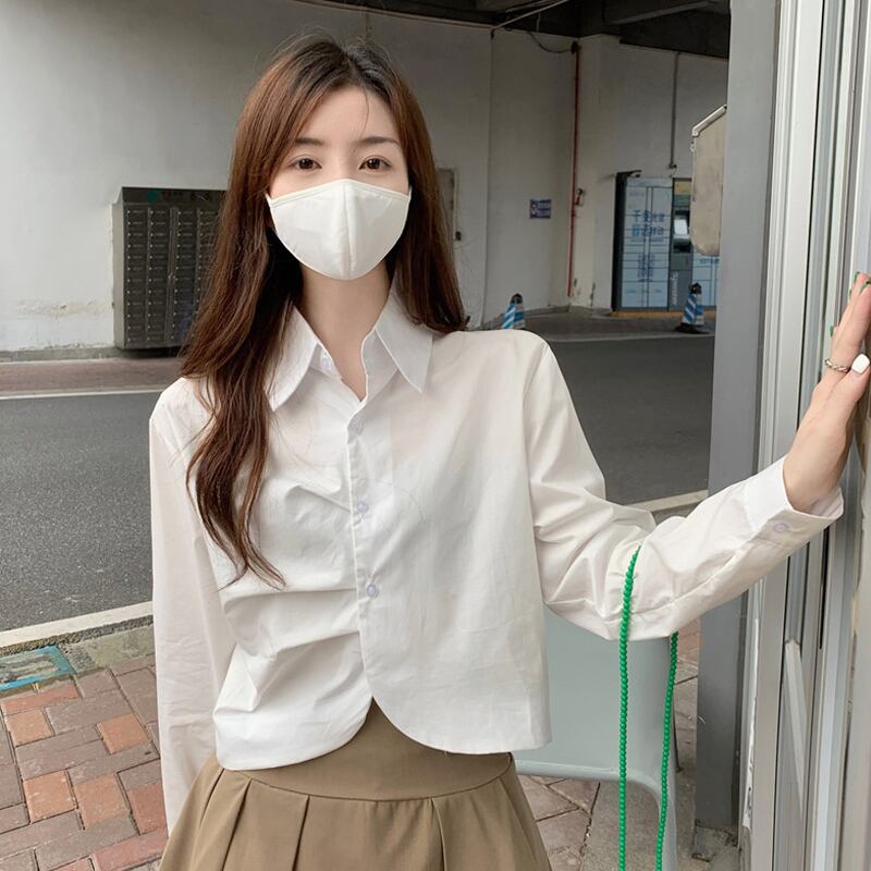 トップス シャツ ミニ ショート 長袖 ホワイト ブルー ストライプ 秋 春