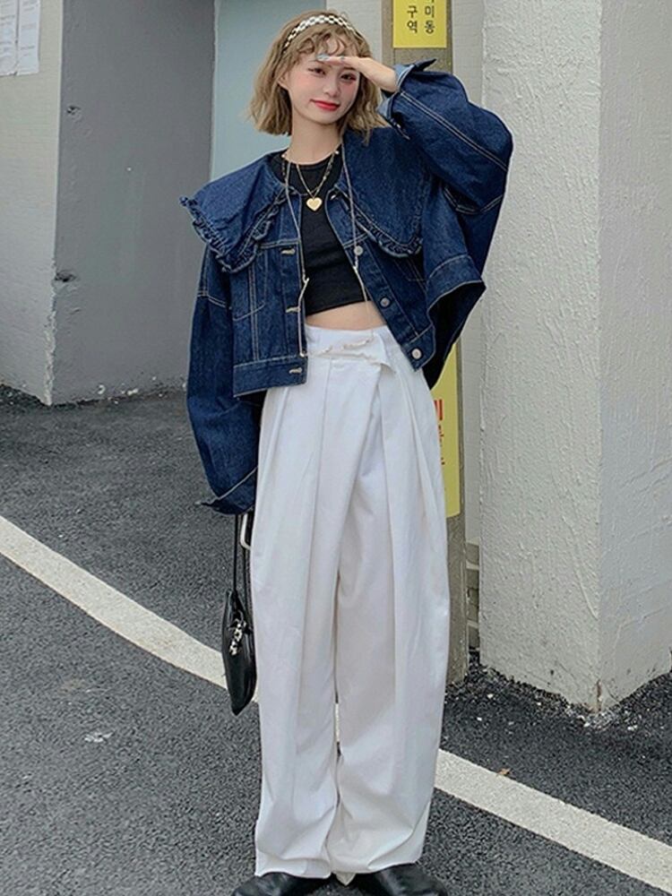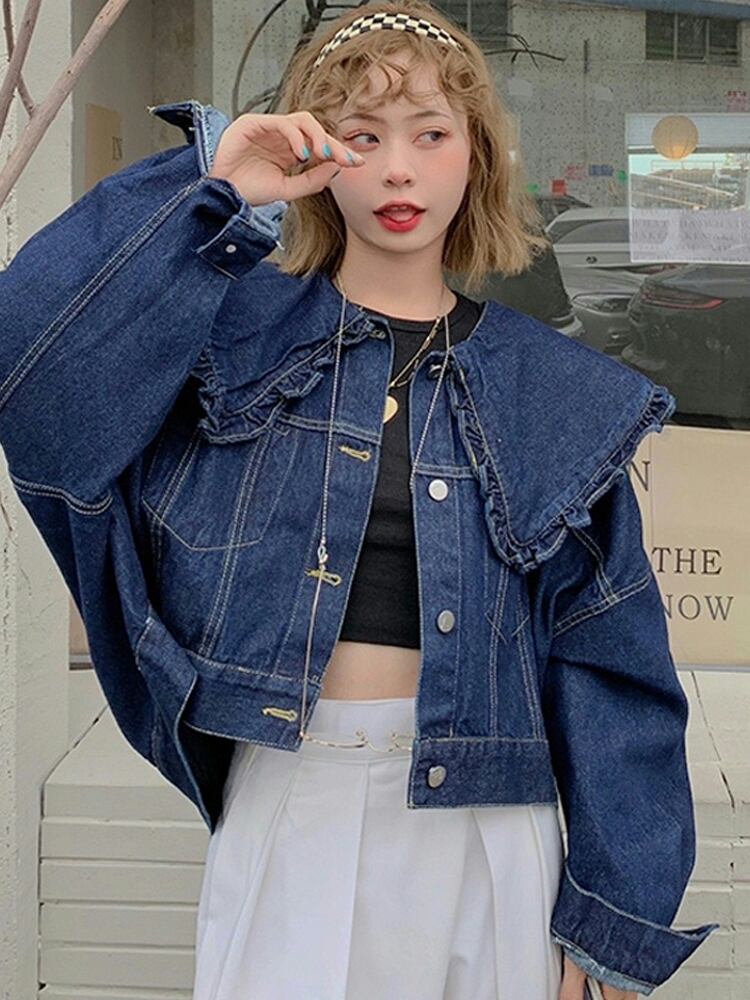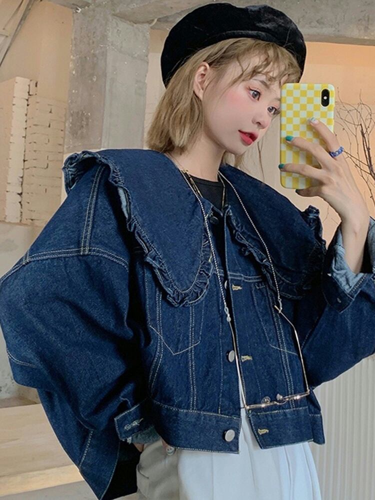 ジャケット デニムジャケット 長袖 ショート丈 ビックカラー 大人カジュアル デート お出かけ
