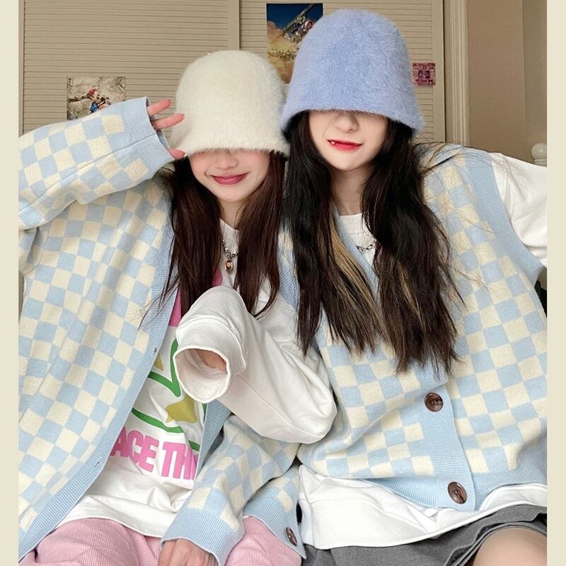 大人カジュアルなブロックチェック柄デザインのニットカーディガンです♡