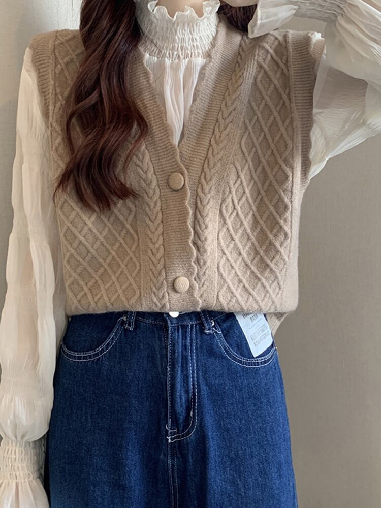 大人カジュアルな無地カラーのニットベストとシースルーブラウスです♡