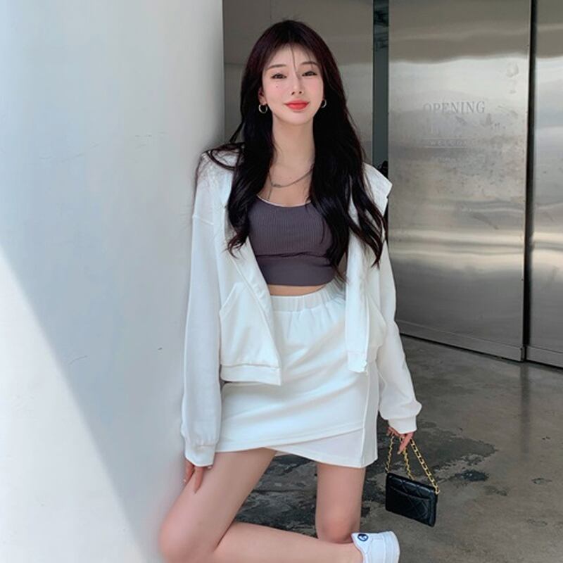 セットアップ スカート ミニ ショート パーカー ブルー ホワイト