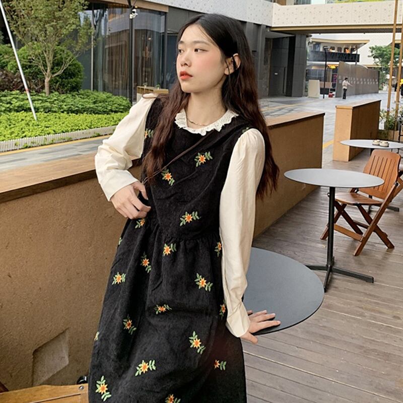 セットアップ ツーピース ブラウス 長袖 シンプル 無地 ワンピース ノースリーブ ミモレ丈 小花柄