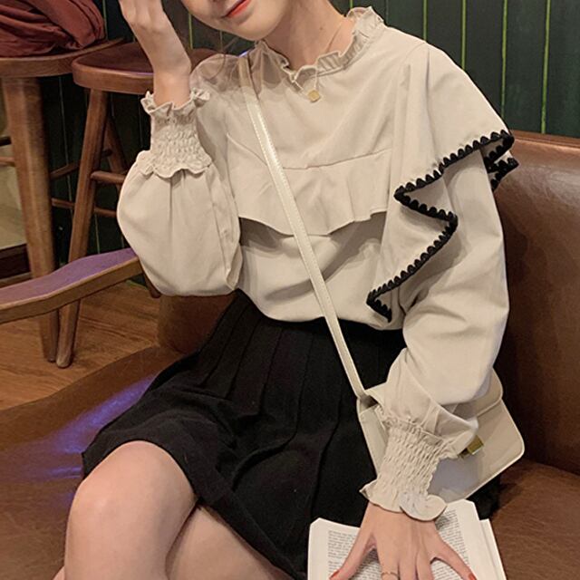 ブラウス 長袖 フリル シンプル 無地 大人可愛い ゆったり デート お出かけ 秋