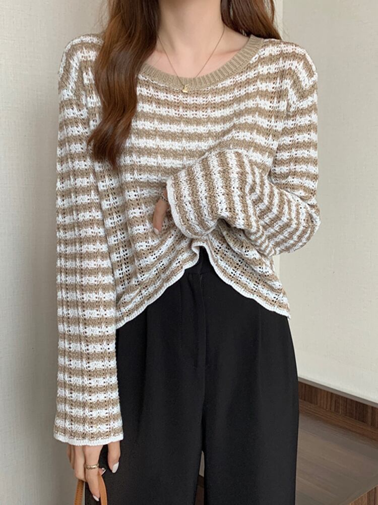 ニット セーター 長袖 ショート丈 ボーダー柄 シンプル 大人カジュアル デイリー 秋