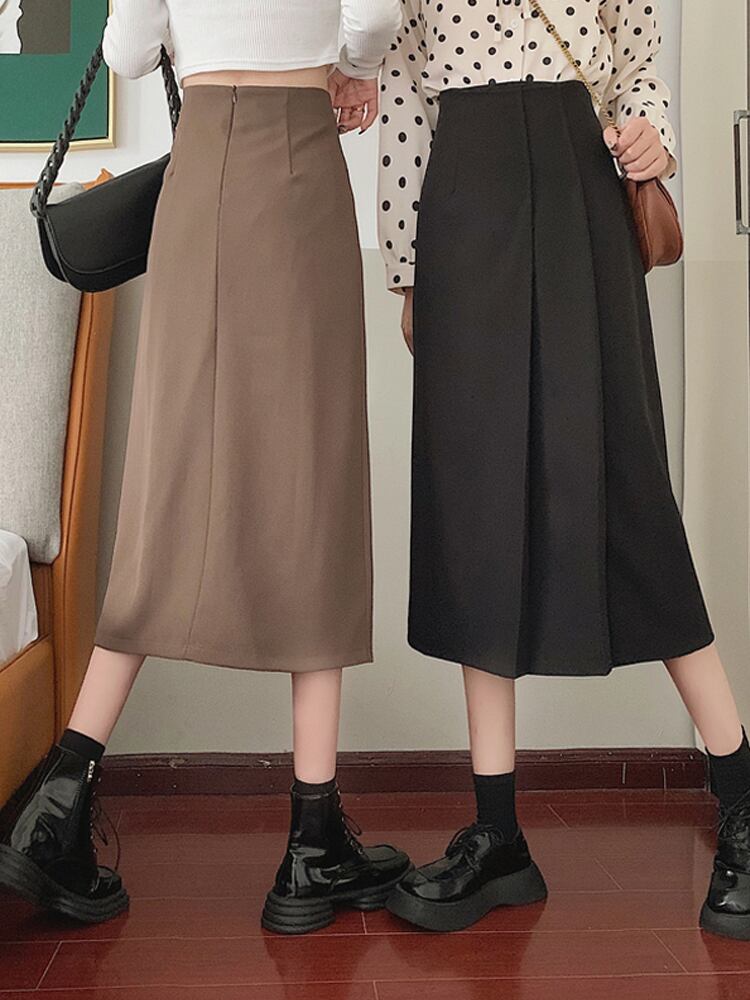 大人カジュアルな無地カラーのミモレ丈スカートです♡