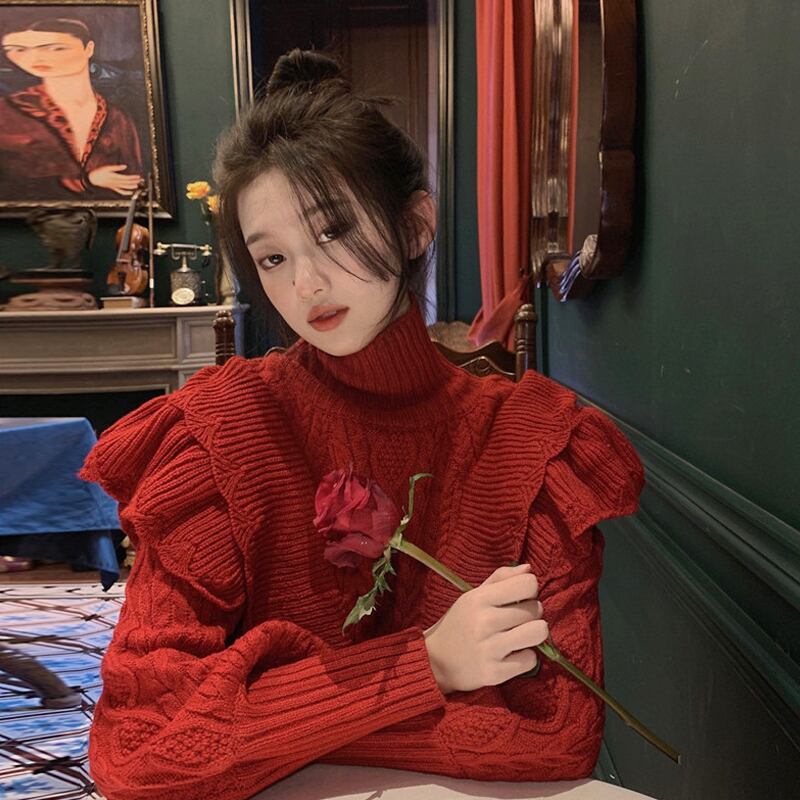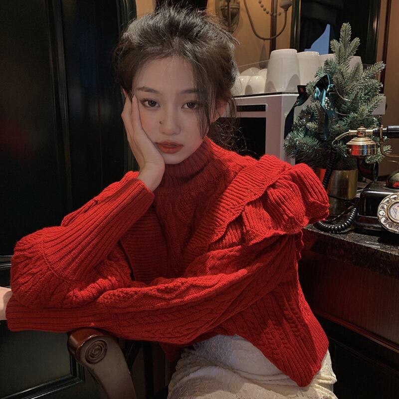 ニット セーター 長袖 フリル シンプル 無地 大人可愛い デート お出かけ 秋 冬