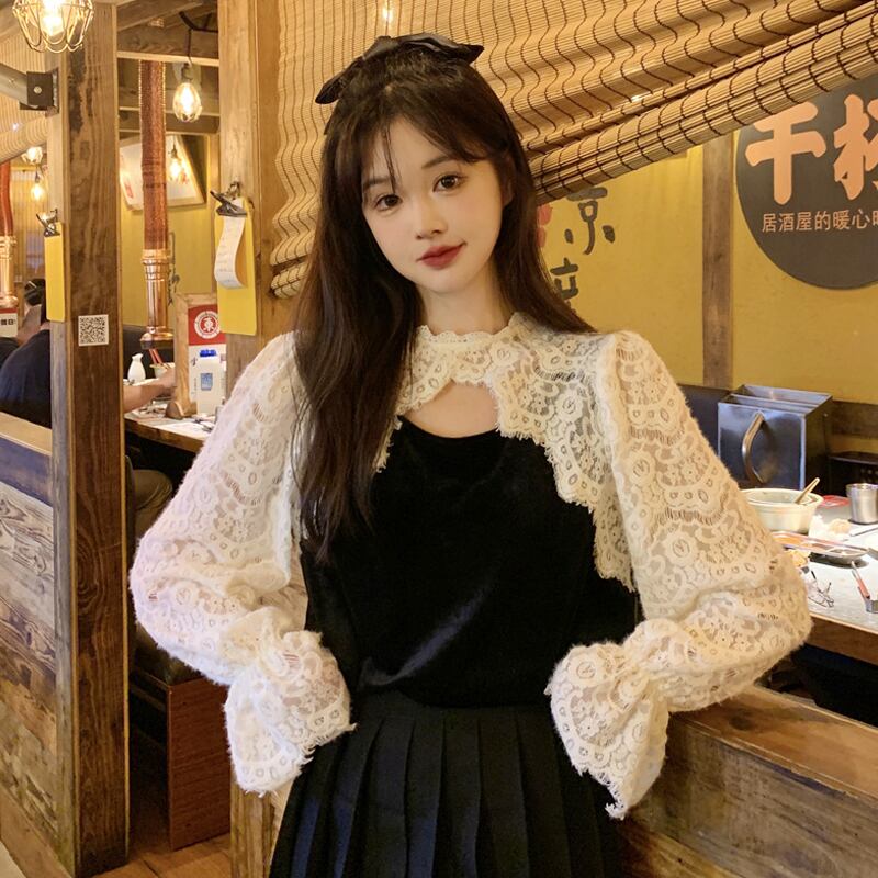 ブラウス 長袖 レース 透け感 シースルー 胸開き きれいめ 大人可愛い デート お出かけ 秋