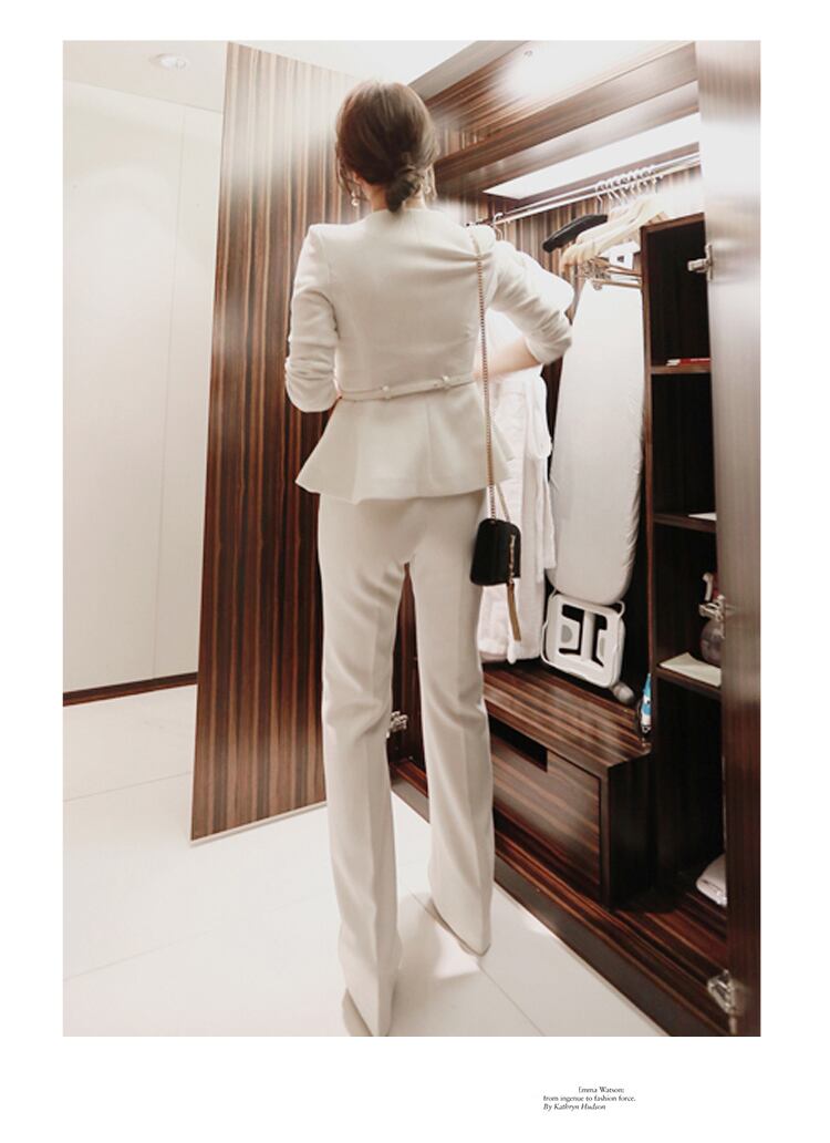 きれいめな無地カラーの長袖ブラウスとフレアパンツのセットアップです♡