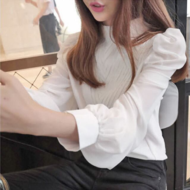ブラウス 長袖 パフスリーブ シンプル 無地 きれいめ 大人可愛い デート お出かけ 秋