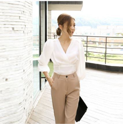 きれいめな無地カラーの長袖ジャケットとパンツのセットアップです♡