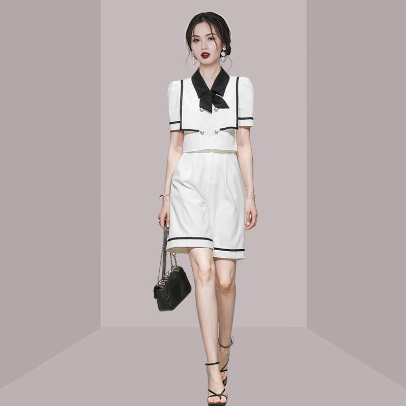 セットアップ ツーピース ブラウス 半袖 襟付き パンツ ショートパンツ ハイウエスト きれいめ 大人カジュアル