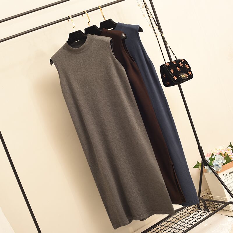ワンピース ノースリーブ 膝丈 フレア スリム タイト シンプル 無地 きれいめ 大人カジュアル