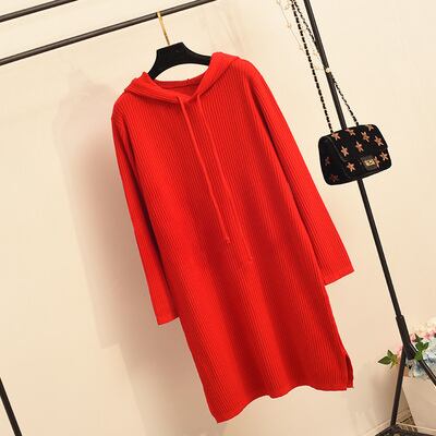 ワンピース 長袖 膝丈 フード シンプル 無地 大人カジュアル ゆったり デイリー