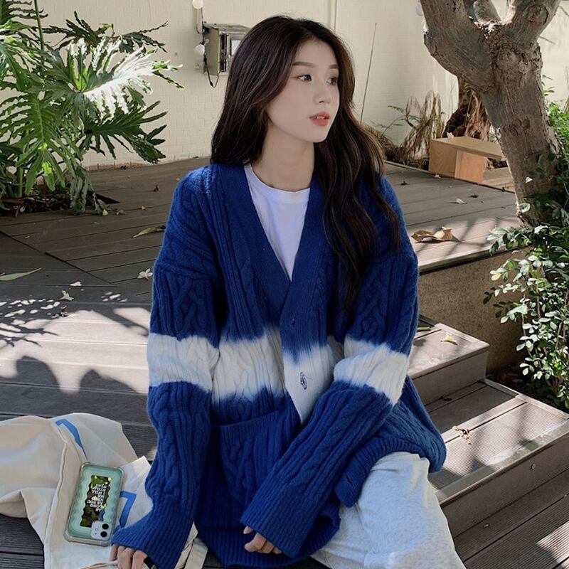 カーディガン ニット ブルー グレー ゆったり ルーズ 秋 冬