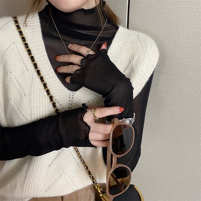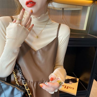 カットソー 長袖 シンプル 無地 きれいめ 大人カジュアル フリル 薄手 シアー 透け感 インナー