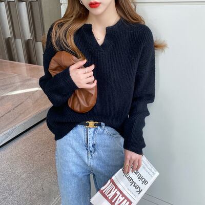 ニット セーター カットソー シンプル 無地 大人カジュアル Vネック キーネック ゆったり