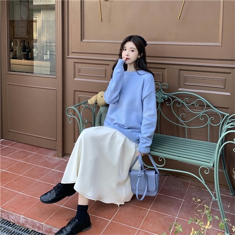 大人カジュアルな無地カラーの長袖ニットとキャミソールワンピースです♡