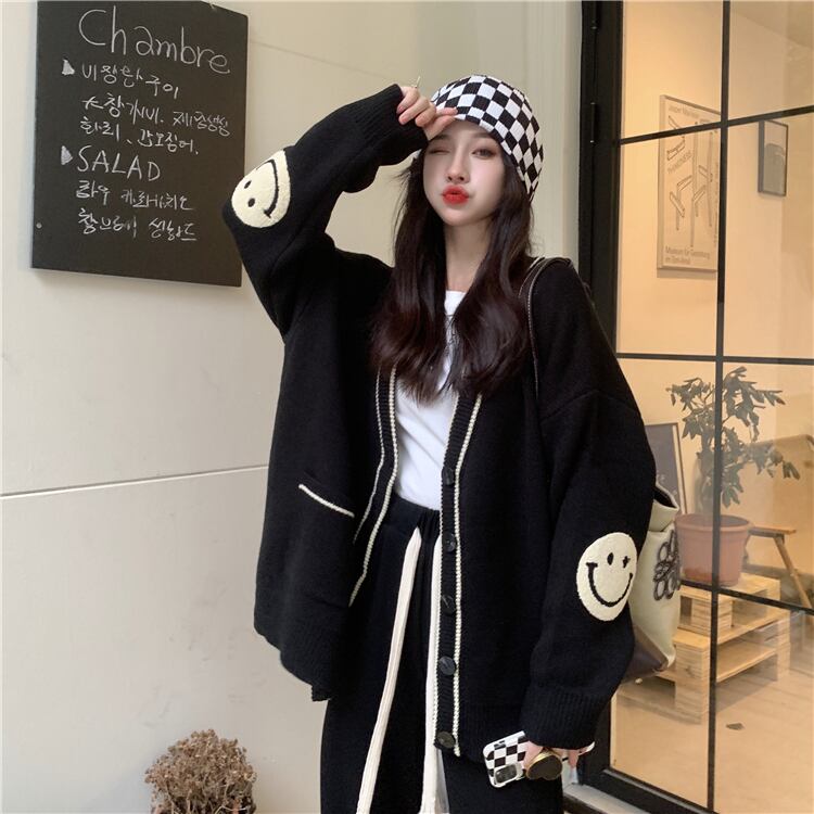 カーディガン ニットカーディガン 長袖 シンプル 無地 カジュアル スマイル ゆったり オーバーサイズ