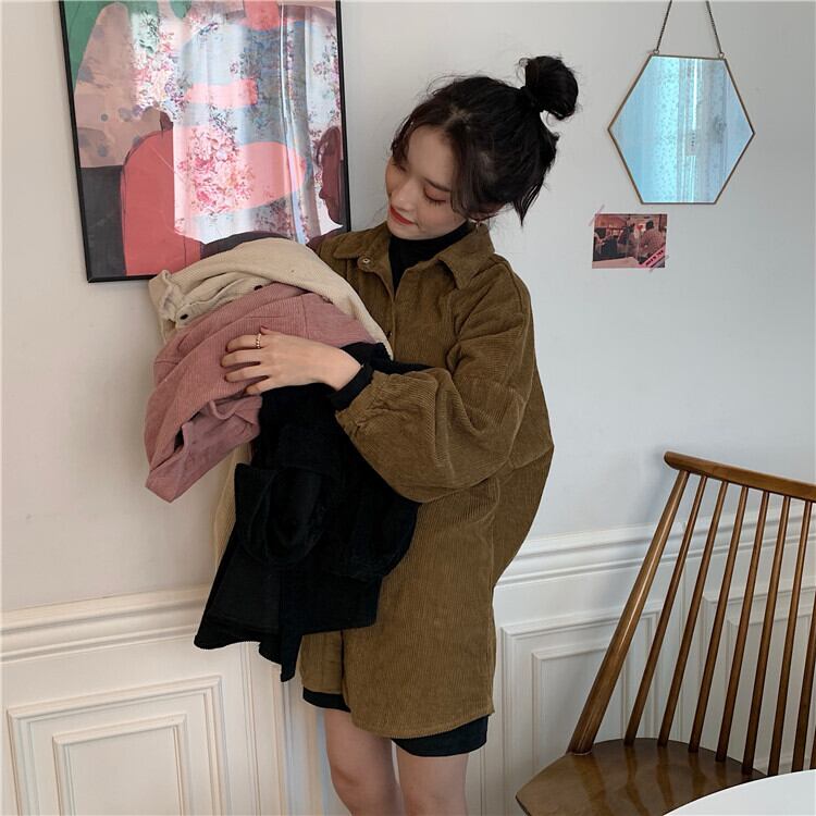 大人カジュアルな無地カラーの長袖コーデュロイシャツです♡