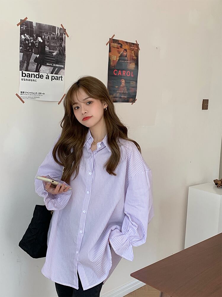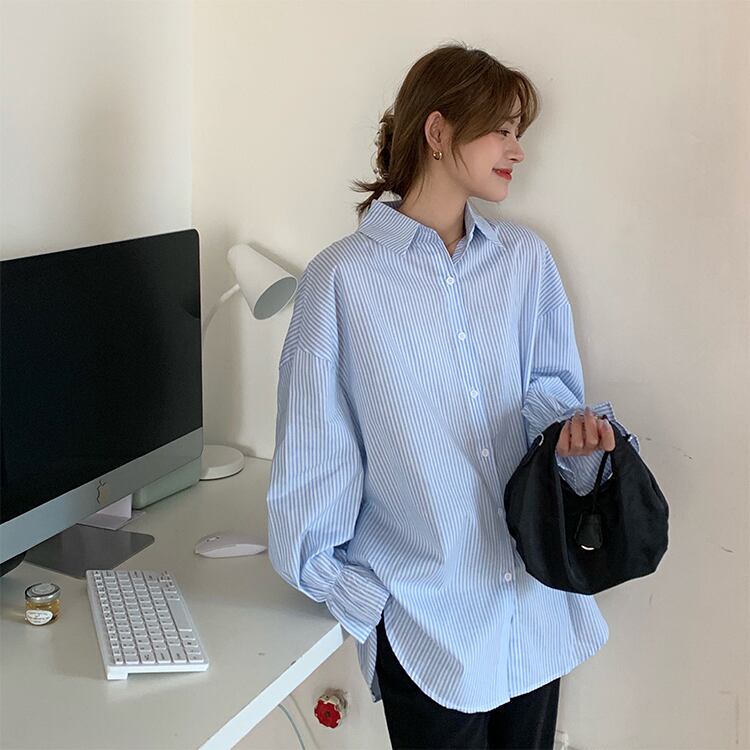 シャツ 長袖 ストライプ柄 大人カジュアル きれいめ 薄手 ゆったり オーバーサイズ