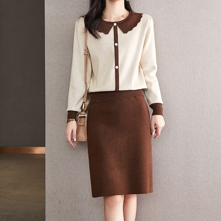 セットアップ ツーピース ニット 長袖 フロントボタン スカート ニットスカート タイト きれいめ