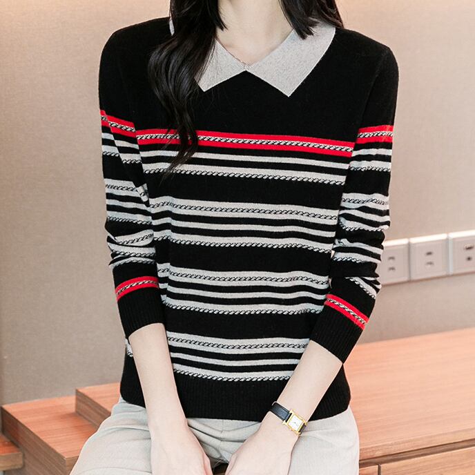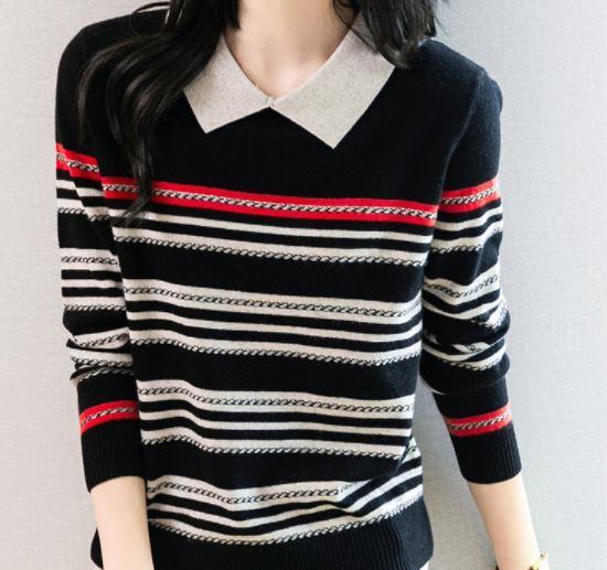 ニット セーター 長袖 ボーダー柄 襟付き 大人カジュアル 薄手 デート お出かけ 秋 冬