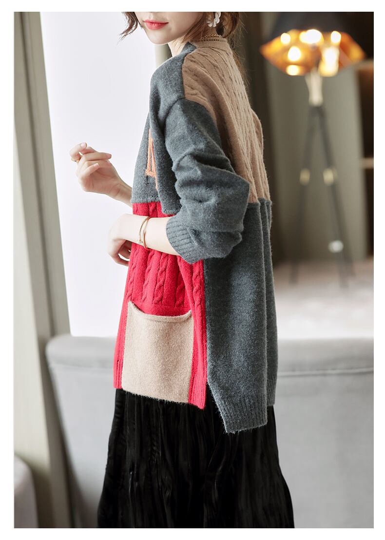カーディガン ニットカーディガン 長袖 Vネック 幾何学模様 バイカラー 大人カジュアル 秋