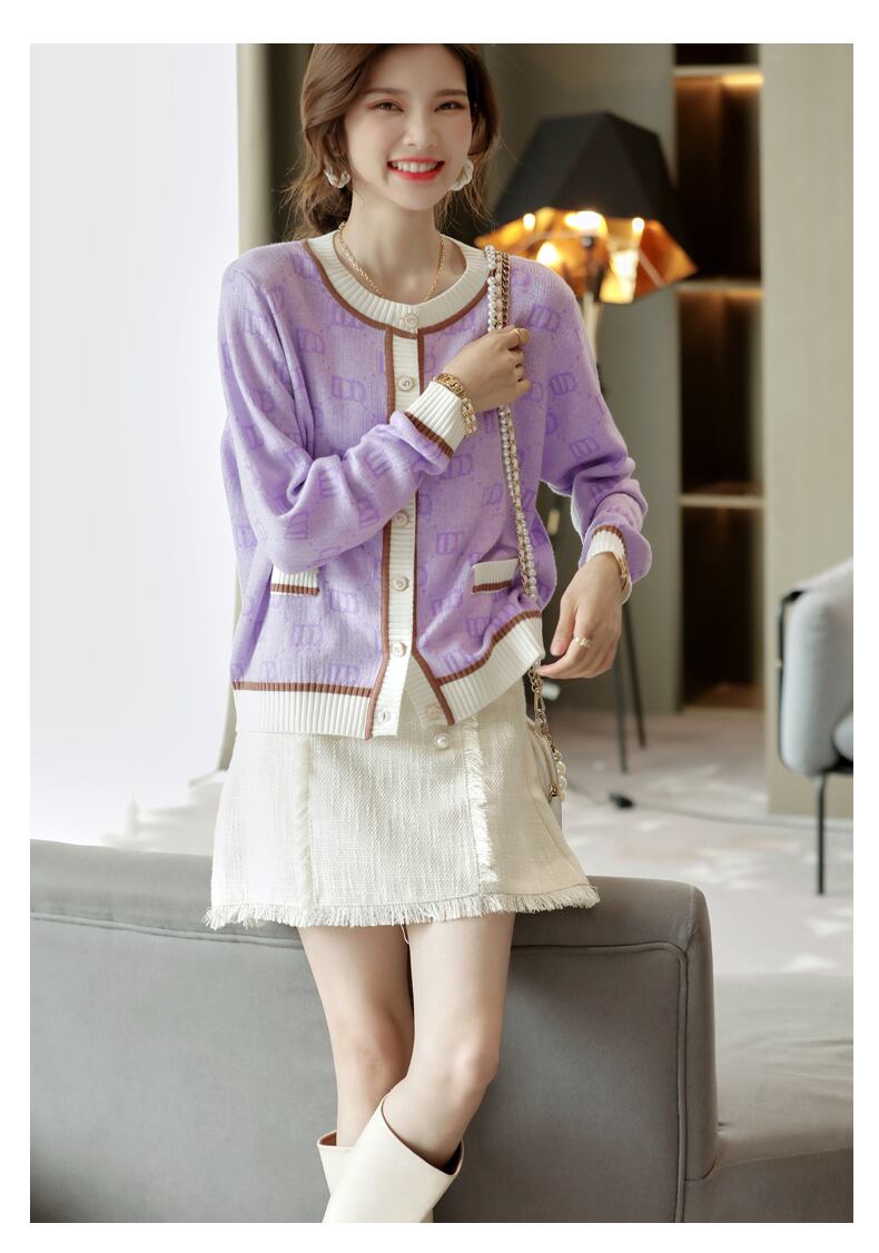 カーディガン ニットカーディガン 長袖 ラウンドネック フロントボタン 総柄 きれいめ 上品
