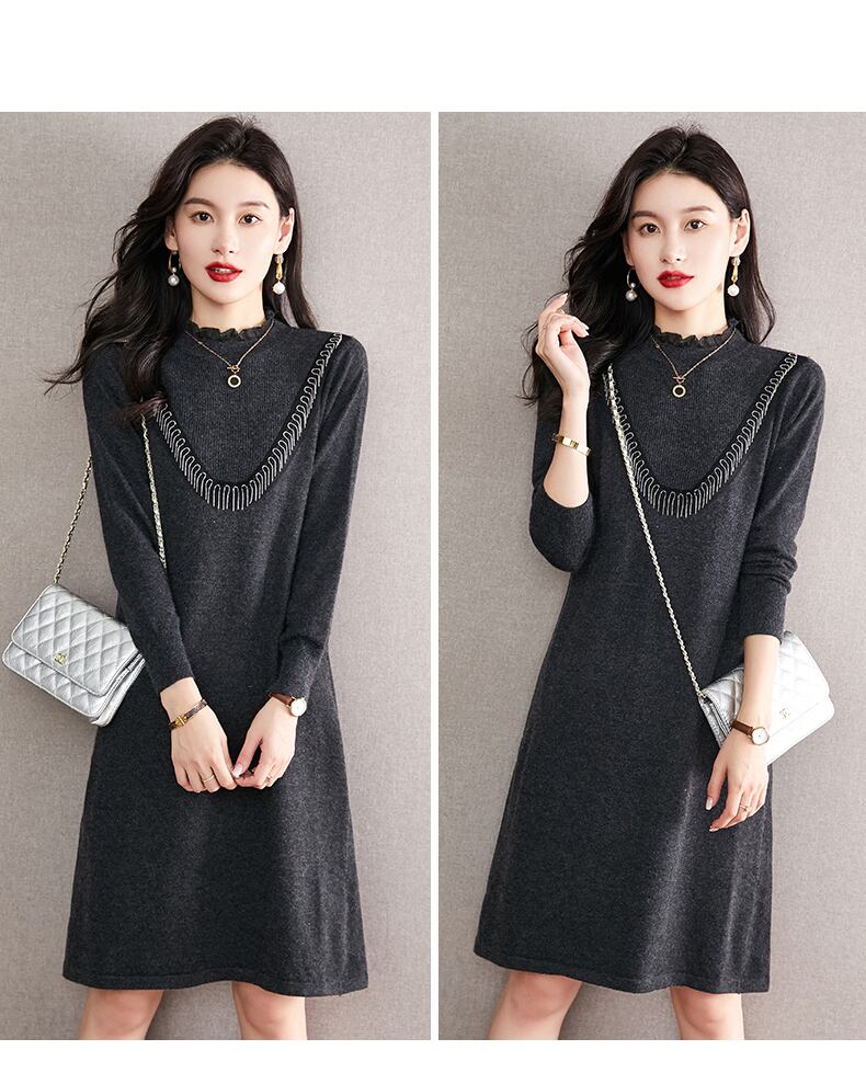 ワンピース ニットワンピース 長袖 膝丈 シンプル 無地 きれいめ 上品 大人カジュアル お出かけ