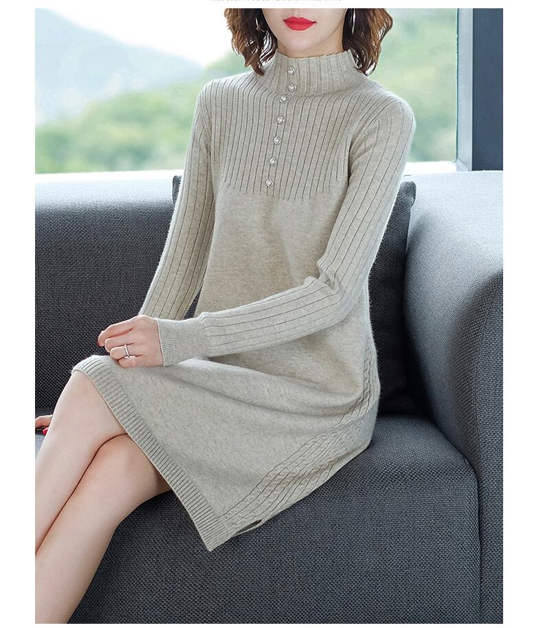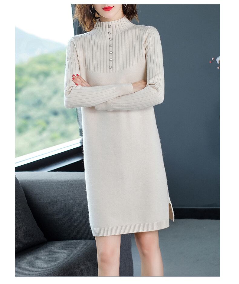 ワンピース ニットワンピース 長袖 膝丈 プチハイネック シンプル 無地 きれいめ 大人カジュアル