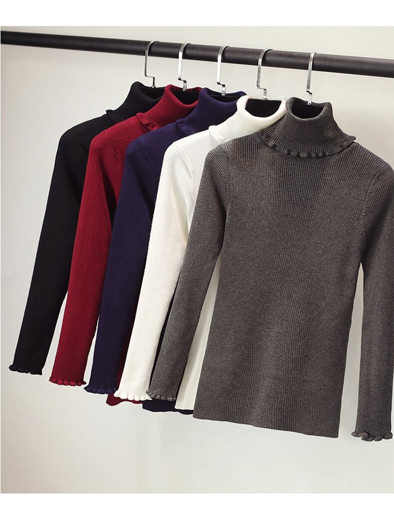 カットソー ニット 長袖 タートルネック リブニット シンプル 無地 大人カジュアル 薄手 インナー