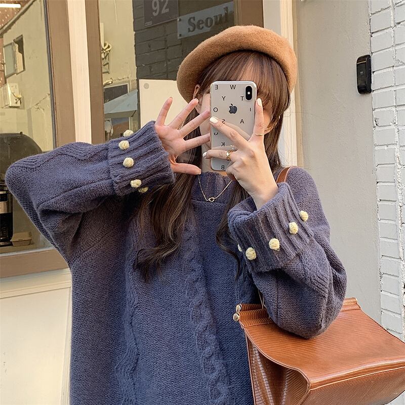 ニット セーター 長袖 ロング丈 シンプル 無地 大人カジュアル ゆったり ボタン デート お出かけ