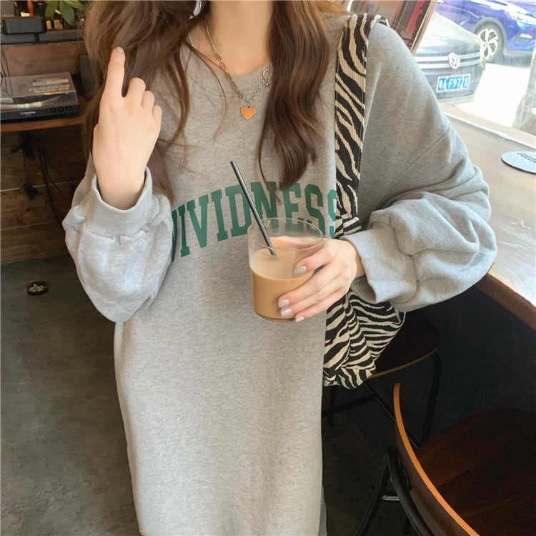 ワンピース スウェットワンピース 長袖 ロング丈 ロゴ カジュアル ゆったり デイリー お出かけ