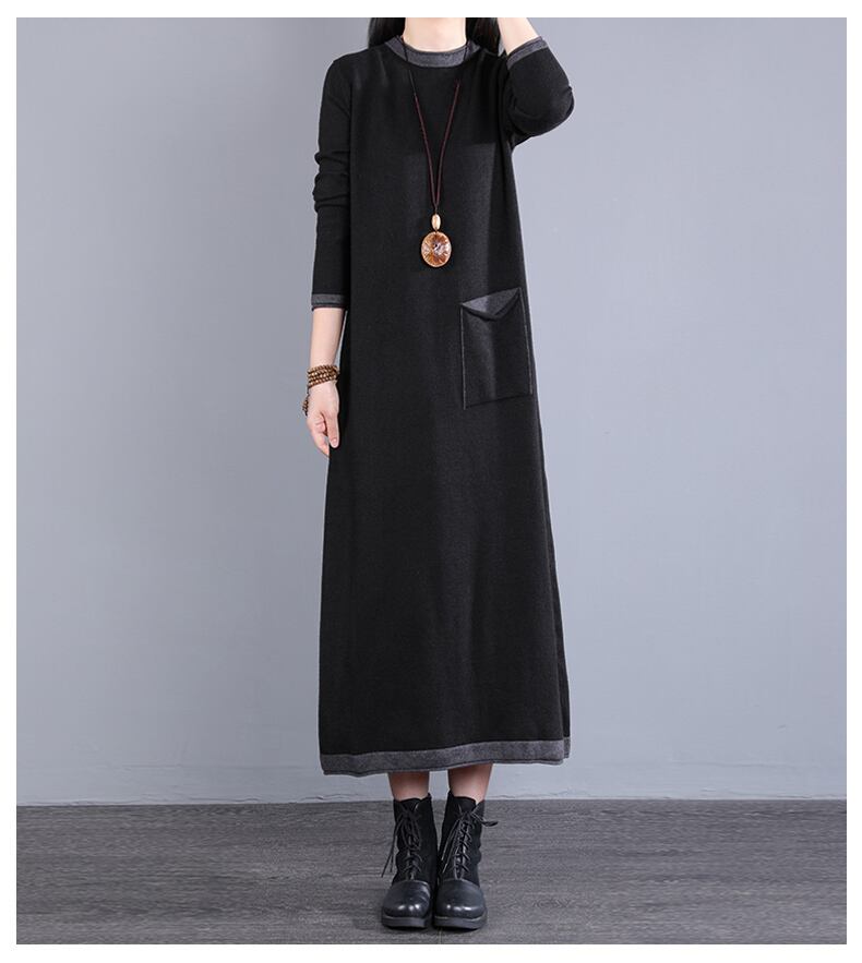 ワンピース 長袖 ロング丈 シンプル 無地 フレア スリム ゆったり 大人カジュアル お出かけ