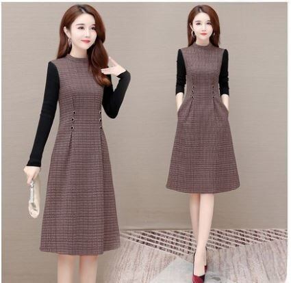 ワンピース 長袖 膝丈 切り替えデザイン チェック柄 トラッド 大人カジュアル デート お出かけ