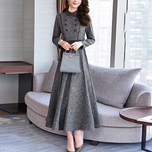 ワンピース 長袖 ロング丈 フレア 襟付き くびれデザイン きれいめ 大人カジュアル デート お出かけ