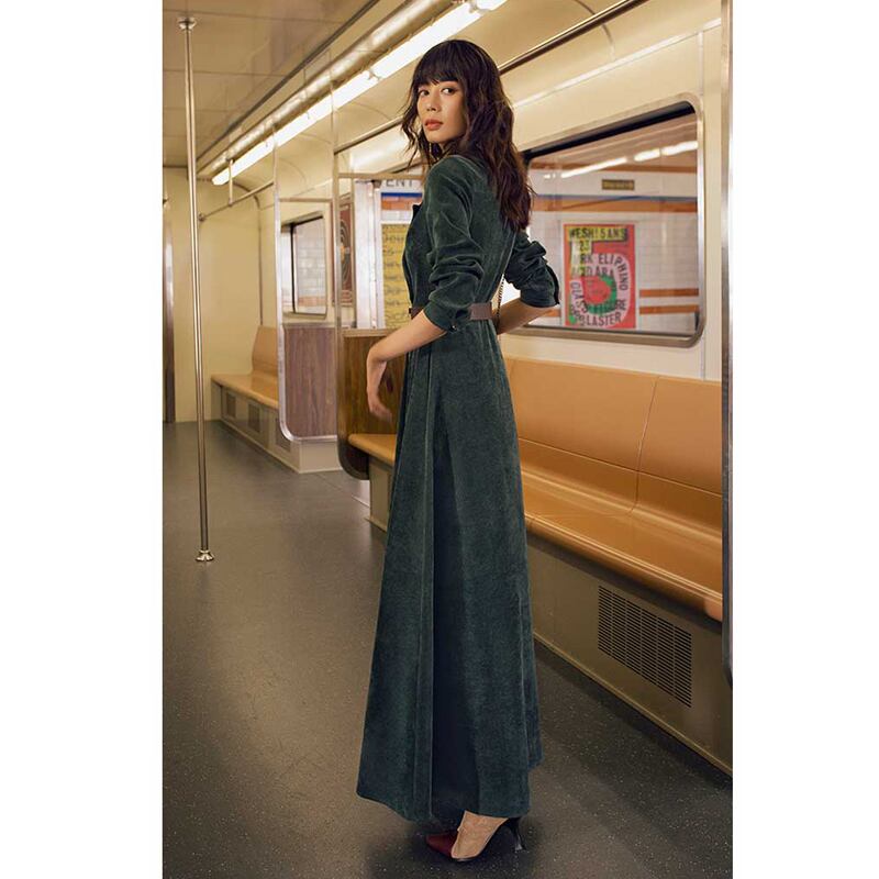 大人カジュアルな無地カラーのロング丈ワンピースです。