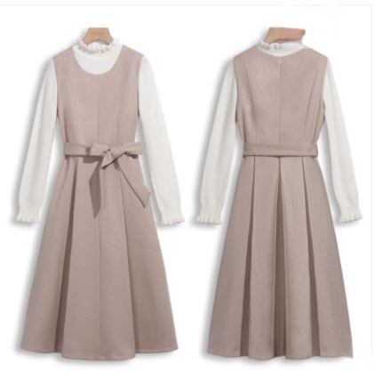 大人カジュアルな無地カラーの長袖カットソーとひざ丈ワンピースのセットです。