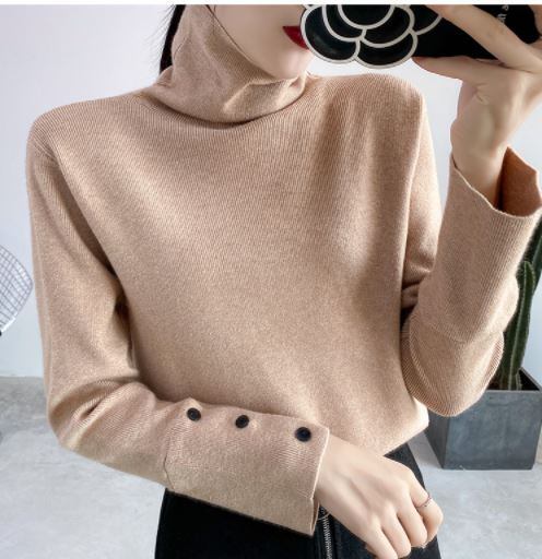 ニット カットソー 長袖 ハイネック シンプル 無地 薄手 大人カジュアル きれいめ 袖ボタン