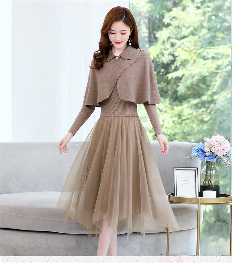 ワンピース ニットワンピース 長袖 膝丈 チュール カーディガン ショート丈 きれいめ 上品