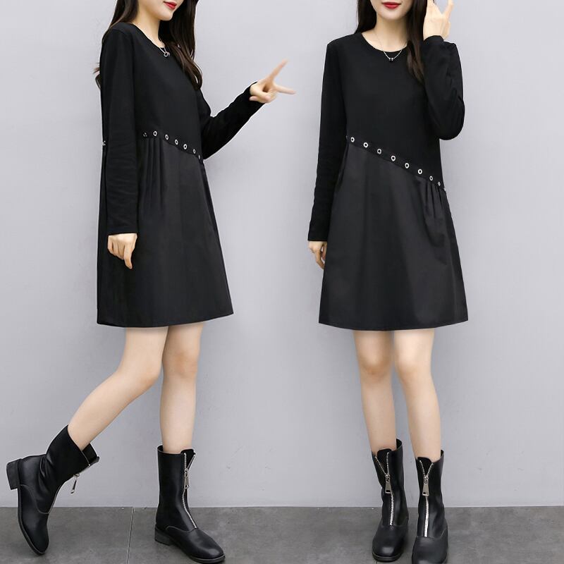 ワンピース 長袖 ミニ丈 フレア 裏起毛 シンプル 無地 切り替えデザイ デートン 大人カジュアル