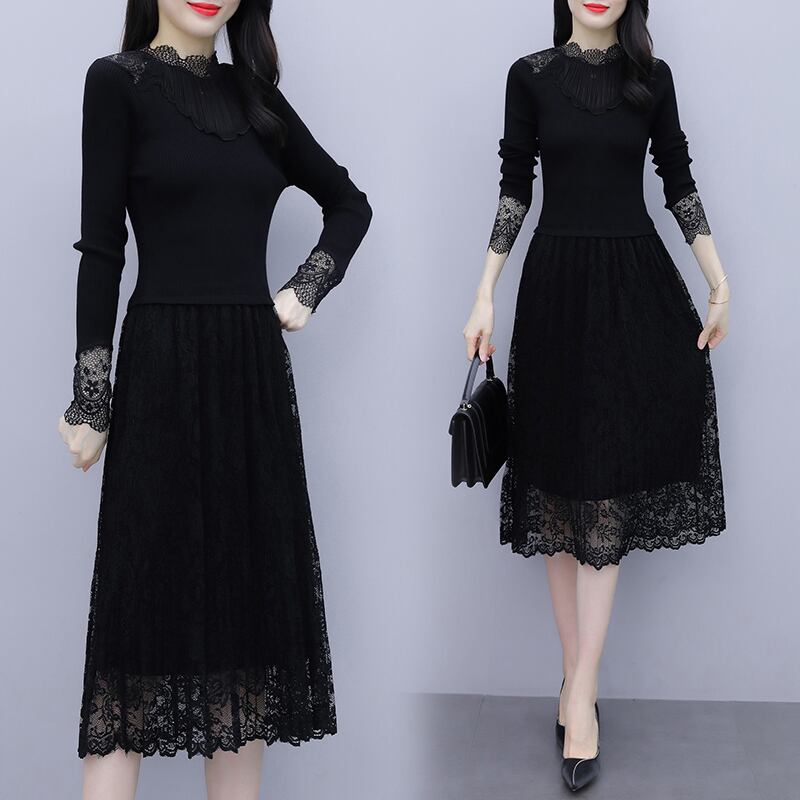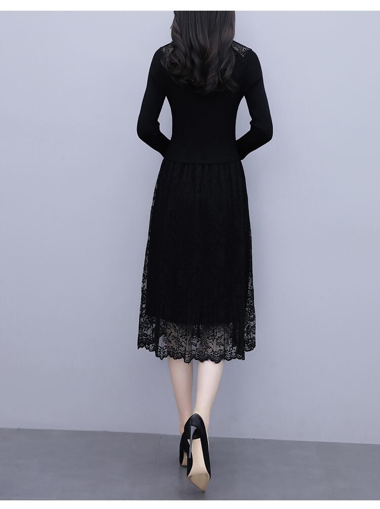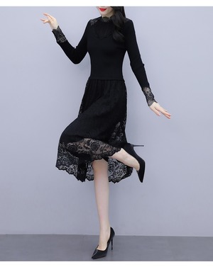 ワンピース 長袖 膝丈 総レース シンプル 無地 きれいめ 上品 フォーマル お出かけ お呼ばれ