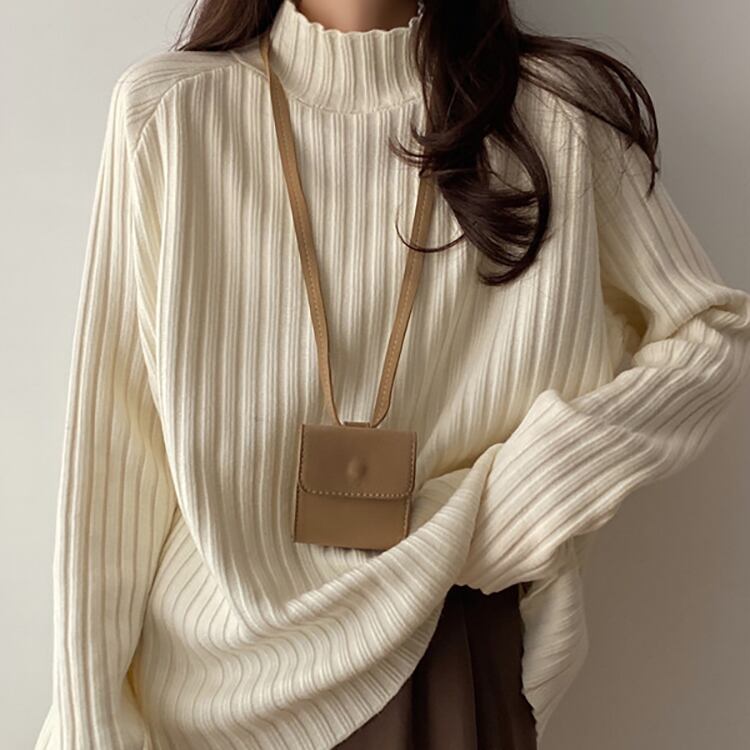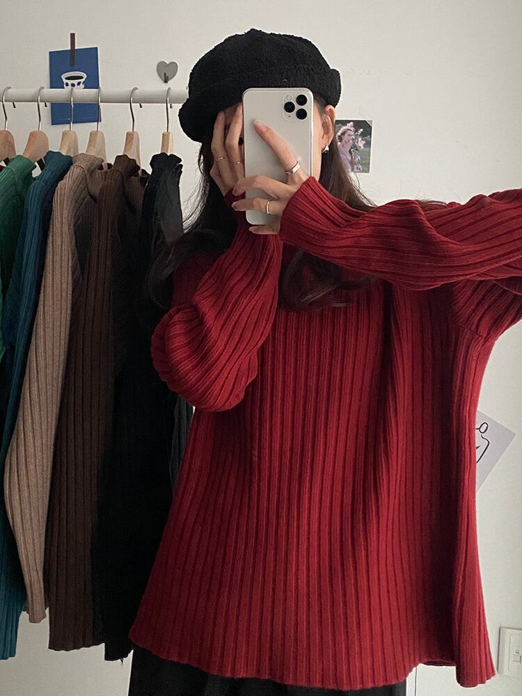 ニット セーター リブニット シンプル 無地 大人カジュアル ゆったり ボトルネック カラバリ