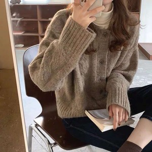 ニット セーター カーディガン 長袖 フロントボタン ショート丈 ざっくり編み シンプル 無地 大人カジュアル