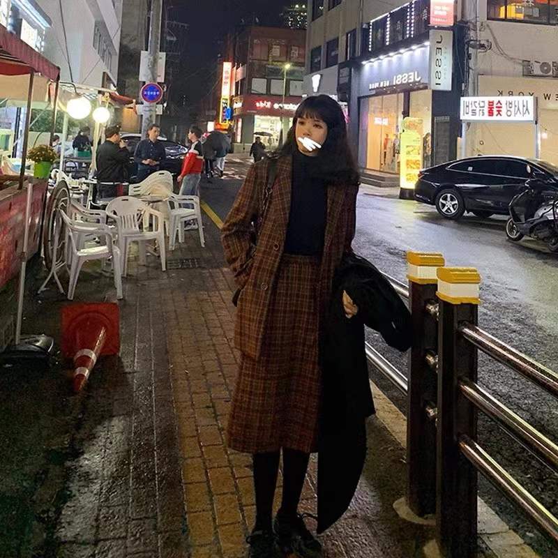 セットアップ ツーピース ジャケット 長袖 ロング丈 スカート 膝丈 チェック柄 大人カジュアル トラッド