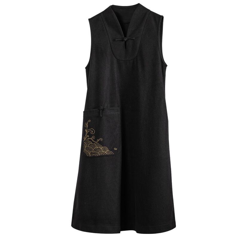 ワンピース ノースリーブ 膝丈 フレア チャイナ風 シンプル 無地 大人カジュアル デート お出かけ