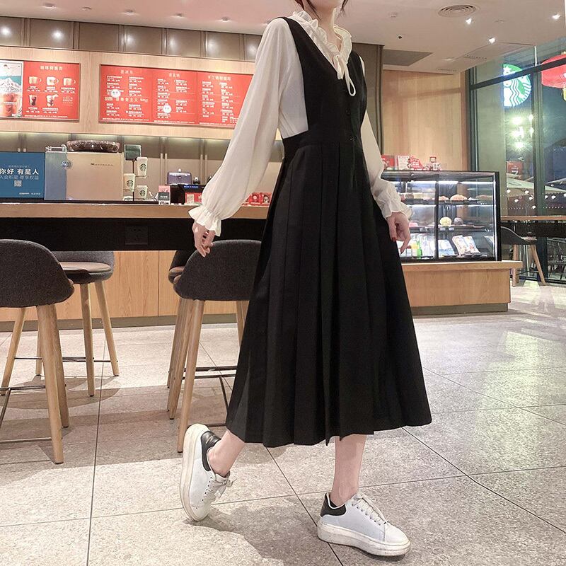 セットアップ ツーピース ブラウス 長袖 リボン ワンピース ノースリーブ 膝丈 フレア ジャンパースカート