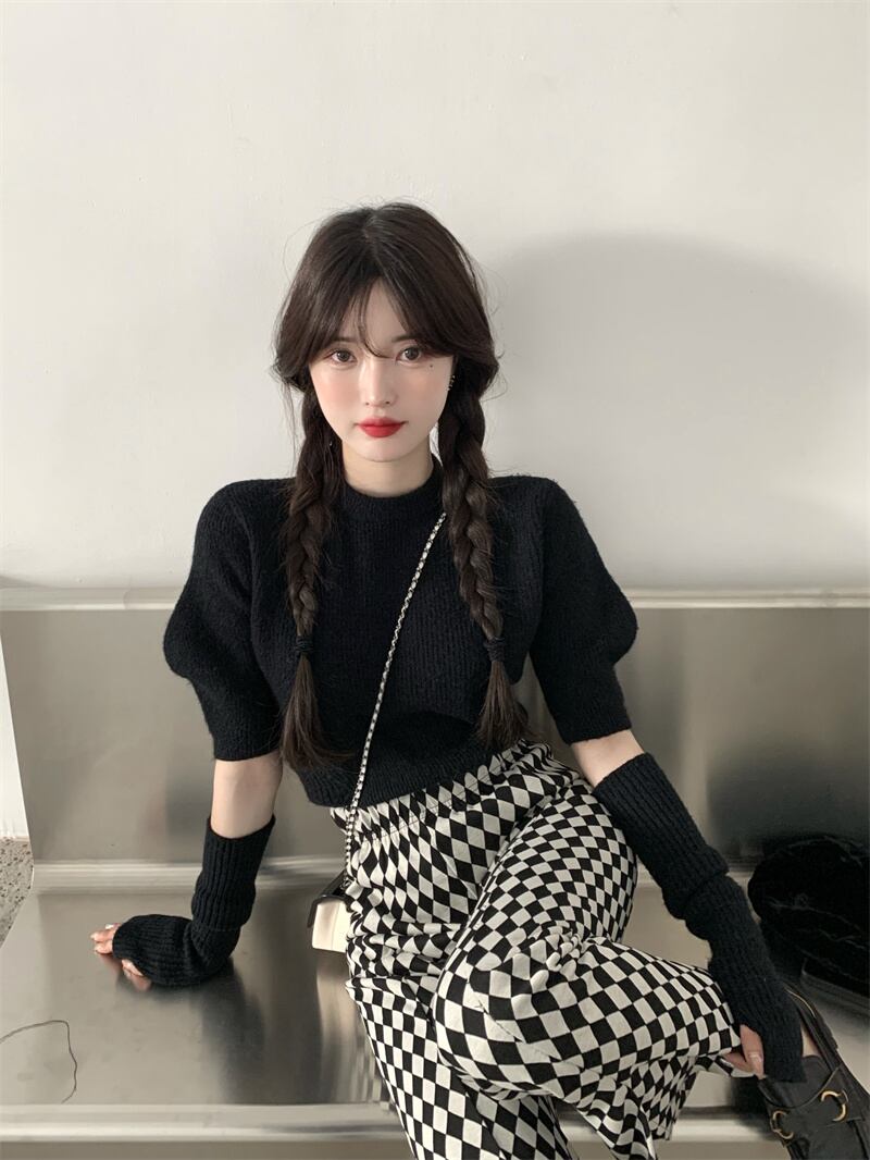 ニット セーター 半袖 シンプル 無地 大人カジュアル きれいめ 上品 アームウォーマー デート お出かけ